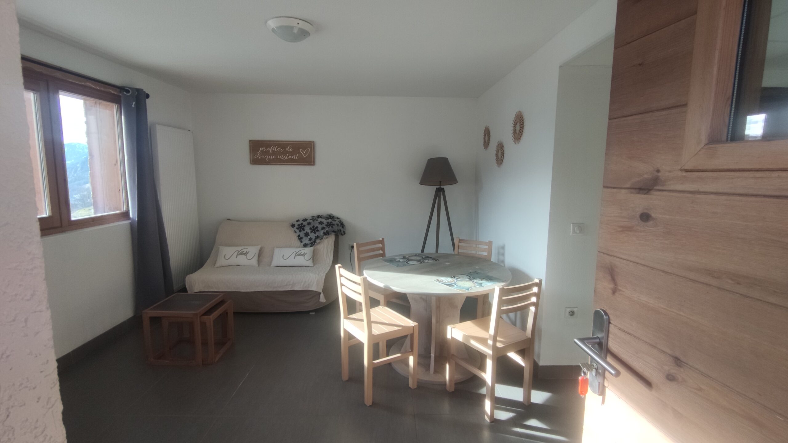 Accolé à la Maison de la Montagne, un joli T1 d’environ 35m², plein de charme tout équipé, de plain pied pour accueillir 2 à 3 personnes.